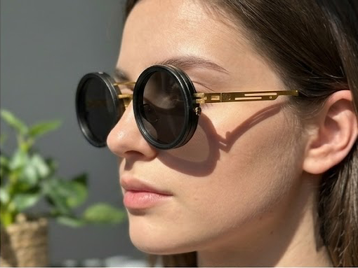 Round sunglasses with black circular front frame